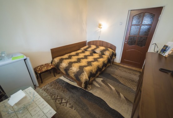 В номере: полутораспальная кровать, прикроватная тумбочка, встроенный шкаф, стол, кресло, телевизор, холодильник, телефон, набор посуды